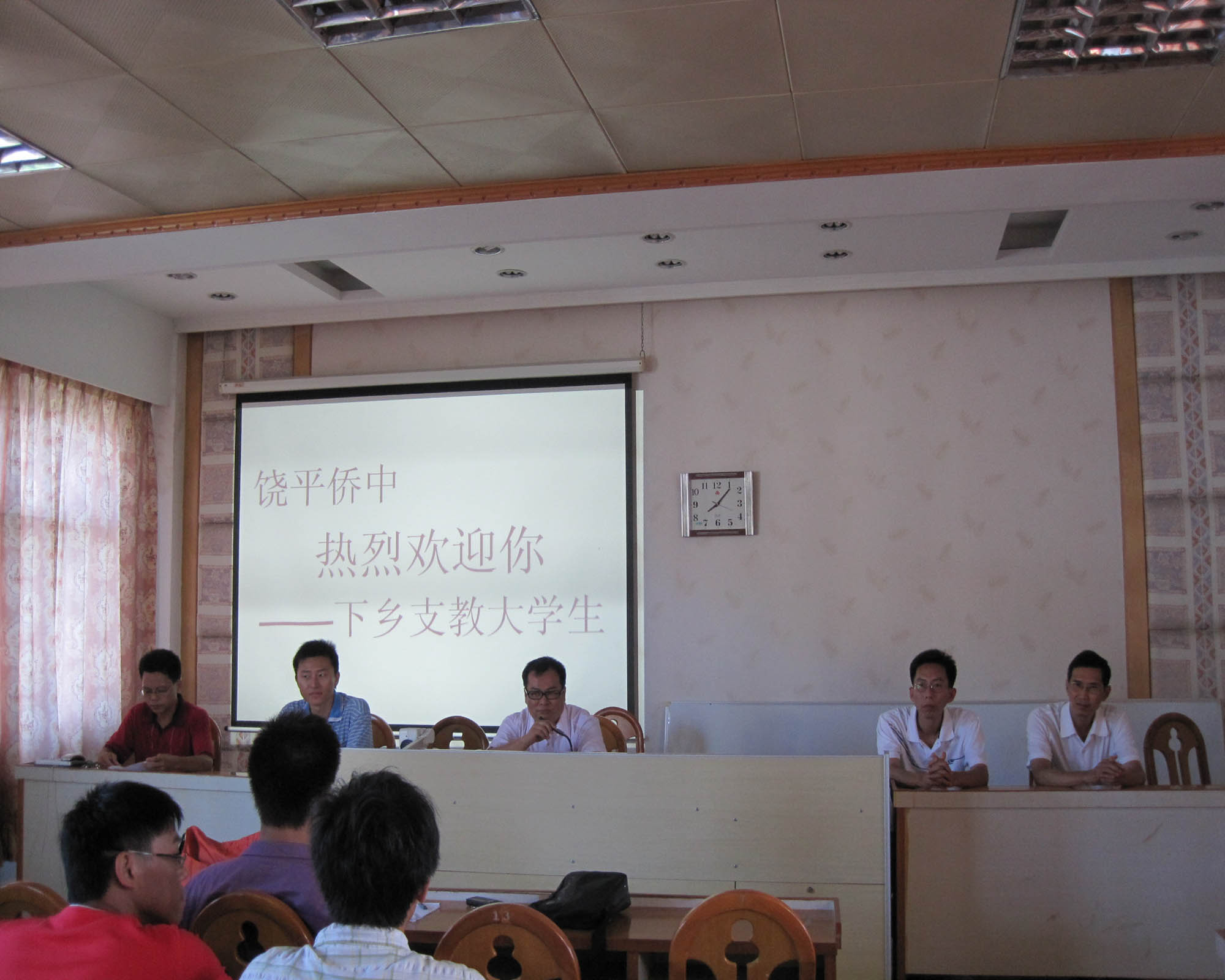 7月16日上午,饶平县黄冈镇华侨中学在学校图书馆五楼举行了简短的欢迎仪式,热烈欢迎下乡大学生。出席嘉宾有华侨中学校长余怀中、政教处主任、后勤处主任以及广东外语外贸大学带队老师袁金轩。