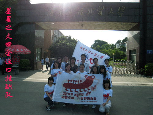 本网讯 7月12日上午8:30,在我校中文学院党委副书记周秀娇和06级辅导员王迪的亲切慰问与指导老师、08级辅导员苗磊的带队下,中文学院“星星之火”四会迳口挂职队出发了。这是全校是唯一一支到四会服务的队伍,也是一支充满党性的队伍,全队十名队员均为党员。