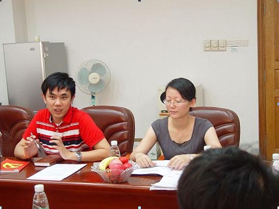 在接下来的经验交流中,管理学院学生党建干部关海明首先对我院发展党员的概况进行了简单的介绍。听到“2497人递交入党申请书,1796人被确定为积极分子,729人党校培训结业”这些庞大的数字,周大鹏“大吃一惊”,并高度赞扬了我们同学的入党激情、入党积极性,还幽默地发出了 “我们的激情去哪了?” 、“为什么我们没有?” 的感叹。接着,许少萍对我院党建工作08-09学年所取得的成果进行了展示,同时简明阐释了我们注重夯实党支部基础的做法。周大鹏表示这些都给了他们很大的借鉴作用,此外他们对辅导员责任制,团支部推优入党制也表现出很大的兴趣。赖铎也对党建发展历程和架构进行了介绍,希望可以给他们的党建工作带来一点启示。