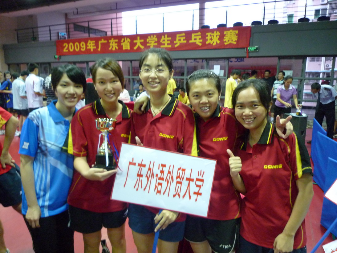 本网讯 经过两天的角逐,6月28日下午,2009年广东省大学生乒乓球赛在华南理工大学(五山校区)西区体育馆落下帷幕,广外乒乓球女队在最后一场比赛中,以3:2艰难战胜广商获得甲组季军。