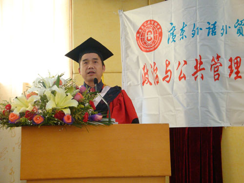 本网讯 6月25日14时,政管学院2009届毕业典礼在南校区八角楼隆重召开,出席本次毕业典礼的有政管学院党委书记范静静,副院长彭未名、吴显庆,党委副书记麦培年以及政管学院的其他老师。