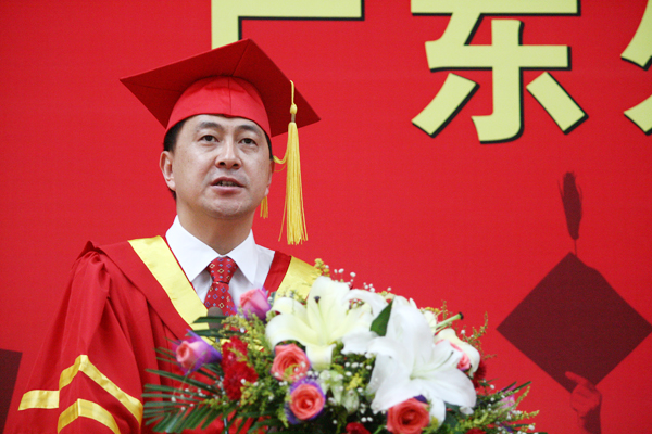 隋广军向顺利毕业、即将奔赴全国各地的5074名应届毕业生表示热烈祝贺;向辛勤耕耘,默默奉献的老师和家长表示衷心的感谢。在致辞中,隋广军校长字字珠玑,对毕业生提出了珍贵的三句临别赠言。他希望毕业生们能保持“立足平凡、追求卓越”的广外传统,为国家、社会作出贡献。