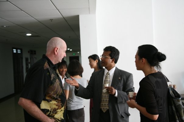 研讨会正式开始后,美方教授Dr. Shelton Williams发表演讲。Dr. Shelton Williams就台湾问题、朝核问题发表了看法。他表明解决朝鲜问题需要国际社会的共同努力,并指出中国将是21世纪世界格局的中流砥柱,对美国、欧洲以及亚洲的发展有着重大的意义。对于奥巴马的上任,Dr. Shelton Williams表达了他最热烈的支持,他认为奥巴马是五十年难遇的好总统并相信奥巴马能够很好地管理美国财政、政治等方面的问题。