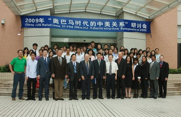 本网讯 6月27日上午,由我校法学院国际安全与战略研究中心主办、外交学社承办的“奥巴马时代的中美关系”研讨会在中大东苑宾馆首层会议厅开幕。国际安全与战略研究中心(CISSS)主任唐小松教授担任开幕式主持。我校副校长仲伟合、法学院党委书记金良成以及法学院部分老师和我校学生以及美方奥斯古德中心主任、奥斯丁学院政治学教授Dr. Shelton Williams、约翰霍普金斯大学高级国际研究院外交政策访问学者Dr. Patrick Mendis等教授和美方学生出席了研讨会。