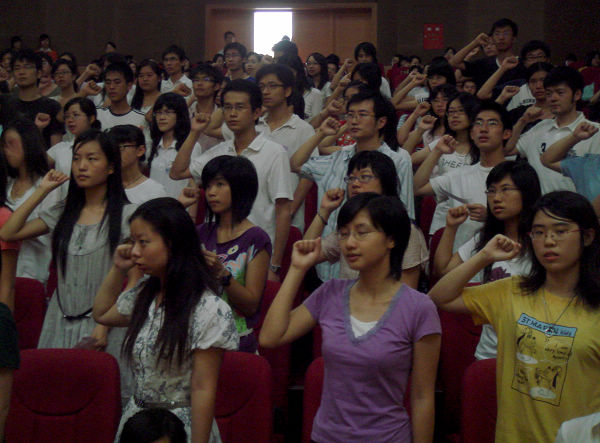 在卢海清副书记的主持下,大会进行新党员入党宣誓,各年级新党员在在鲜红的党旗下郑重地许下自己的诺言。