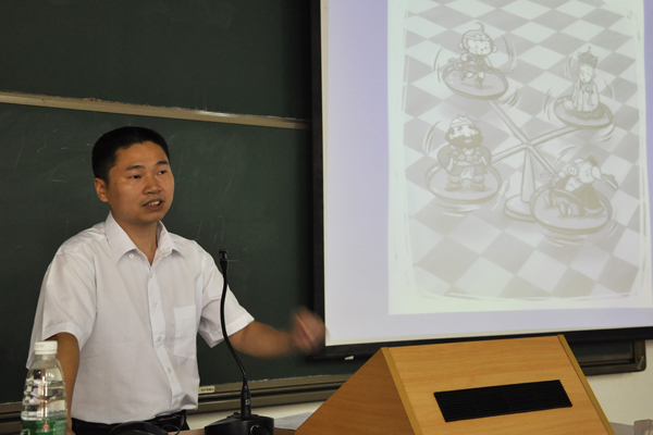本网讯 《西游记》中大闹天宫、三打白骨精等经典章回早已家喻户晓,直至今日,西天取经的故事读来依然历久弥新。6月12日下午,由我校团联主办、外交学社承办的广外百家讲坛之“众神博弈:《西游记》中的人生智慧与政治谋略”在南校区C208举行,法学院副院长、外交学社指导老师陈寒溪担任主持。主讲人中国社会科学院亚太研究所副研究员、清华大学国际关系专业博士周方银以其独特的视角审视经典,用现代人的思维为听众重新解码《西游记》,新颖幽默而令人回味。