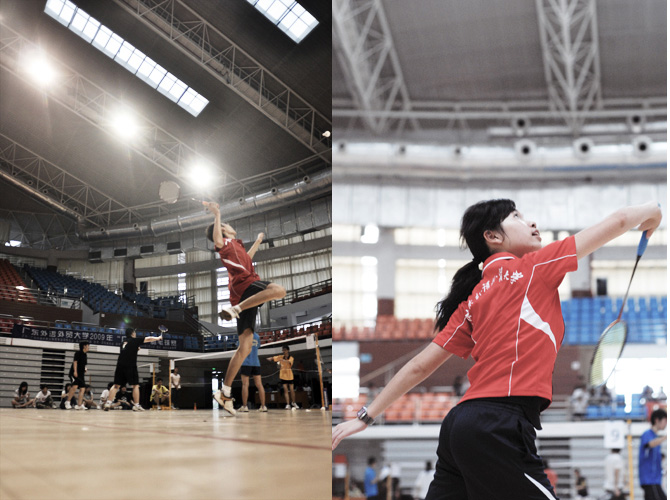 本网讯 5月16日,2009“广外杯”羽毛球赛在南校区体育馆隆重举行。来自南北两校区的413名选手在男单、女单、男双、女双、混双五个项目上展开了激烈的争夺。经过一天的激烈角逐,英文学院的丘伟舜和法学院的蔡轶嘉分别将男单女单金牌收入囊中,而男双、女双和混双的金牌则依次由黄龙、陈嘉健 (信息学院)、蔡轶嘉、涂凤英(法学院)和田佳、黄美宁(公开学院)获得。