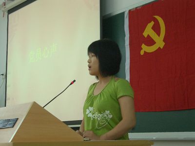 “书记寄语”完毕后,在座各党支部的书记、学生党员都纷纷总结本支部的近况、发表自己的心声。国际经济法一班周秋玲更与大家敞开心扉,畅谈了自己从一名普通群众到成为法学院05级第一批党员的心路历程,四年来“共产党员”已经成为了她的信仰。
