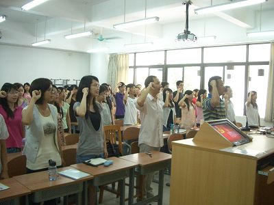 宣誓仪式结束后,具有二十多年党龄的外交学教授孔庆山,分享了他经过十年思想斗争才决心追随中国共产党的思想历程。他建议学生们树立“修身齐家治国平天下”的观念:修身,即要有真才实学,要做一个正直的好人;齐家,就是要协调好家庭关系,为奋斗事业打造坚强的后盾;治国,则是要有国家意识,不可贪不义之财;若每个人都做好以上最基本的三项,那么就已经为国家繁荣做出贡献了,是为“平天下”。