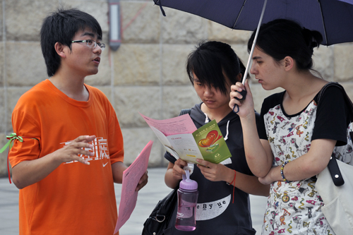 自强社社员为学生讲解活动内容