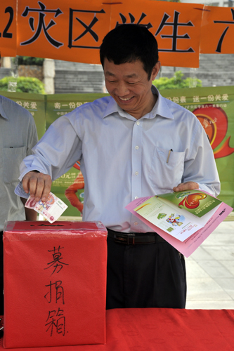 记者在现场了解到,爱心包裹里面包含的都是学生所必须的学习用品。据活动负责人王同学介绍说,善款每筹满100元,则相当于为灾区学生送去一个爱心包裹。王同学说,从上午开始就有不少同学前来咨询,有的还发动班级进行捐款。同学们都慷慨解囊,希望为灾区学子贡献自己的力量。有捐款者表示,献出一份爱心,是为受难的人们祈祷,捐多捐少只是一种形式,最重要的是心意。记者在现场看到,不少老师也加入到捐款队伍当中,并积极向主办方了解捐款情况。