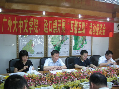 本网讯 5月8日上午,中国语言文化学院党委书记蒙德红,副院长陈彦辉、魏慧斌,副书记周秀娇等到广东省四会市迳口镇镇政府与当地领导举行了座谈会,进一步深入调研对口村的情况,就暑期三下乡的具体工作做了沟通落实并签订大学生社会实践与专业实习基地协议。