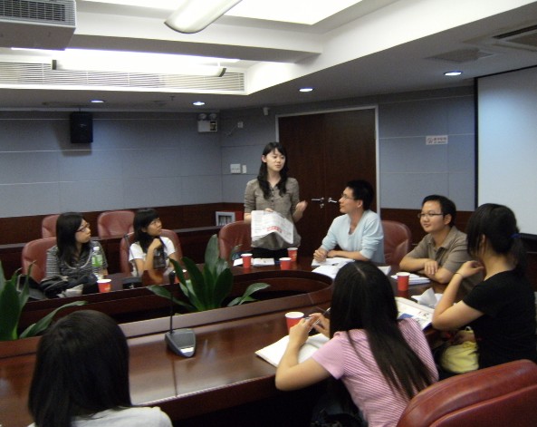 二十多分钟的停留后,同学们来到会议室。南方日报两位资深采编员及时政报主编被邀请参加座谈会,解答大家对新闻知识和工作方面的疑问。同学们积极提问,问题专业且重点性强,充分体现了思考的深度和学习的实践性。两位采编老师亦亲切地传授了切身的体会理解,资深的回答使得同学们深切体会了新闻工作者的工作精神。两个多小时的座谈结束在浓厚的交流学习氛围里。