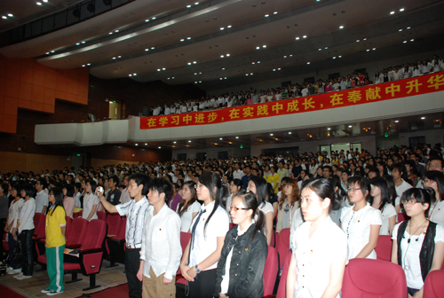 本网讯 4月28日晚,广东外语外贸大学纪念“五•四”运动90周年暨2008-2009学年度“五•四”表彰大会在南校区大会堂隆重召开。出席会议的有校党委书记徐真华,党委副书记陈建平、许国彬,副校长方凡泉,各机关部处领导,以及各学院党委书记、副书记,团委书记,辅导员等。会议由校团委书记刘志军主持。