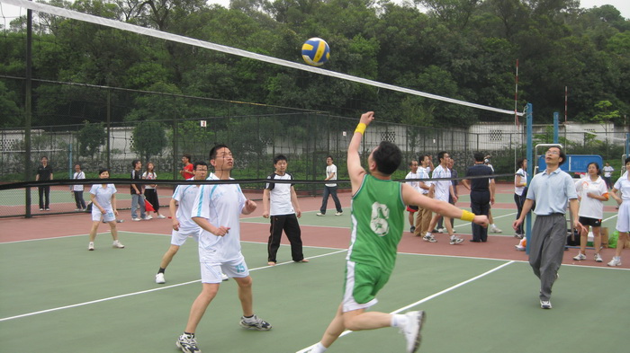 在2号场地上,机关一与翻译的比赛正如火如荼地进行着,校党委副书记许国彬,副校长陈子锐也参加了比赛。双方竞争激烈,0:2,2:4,4:4……比分咬紧不放,但随着比赛进入到后半阶段,机关一愈战愈猛,近乎完美的配合,强力的进攻让比分迅速攀升,最后,以25:14轻松取得胜利。