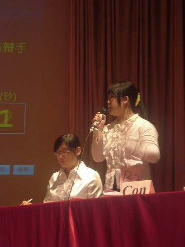 决赛从开始就进入了白热化阶段。经过第一轮的热身,两支队伍都调整到了最佳状态。0pening speech中,正方代表storm一辩从保证学生的学习时间和养成良好的作息规律出发,认为夜晚断网十分必要;反方代表lightening的一辩则指出,保持网络畅通可以延长学生学习时间,方便毕业生找工作,并为与外国朋友交流提供便利。双方各执一词,互不相让。
