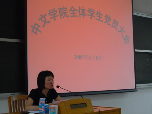 周秀娇还同时对学院目前正在筹建的学生党建小组进行详细说明和报名动员。她指出,随着中文学院学生规模的不断扩大,党建工作不断发展,学生党员队伍不断壮大,在这种发展态势下,对学生党员的管理和建设就要加强,才能适应发展的新要求。