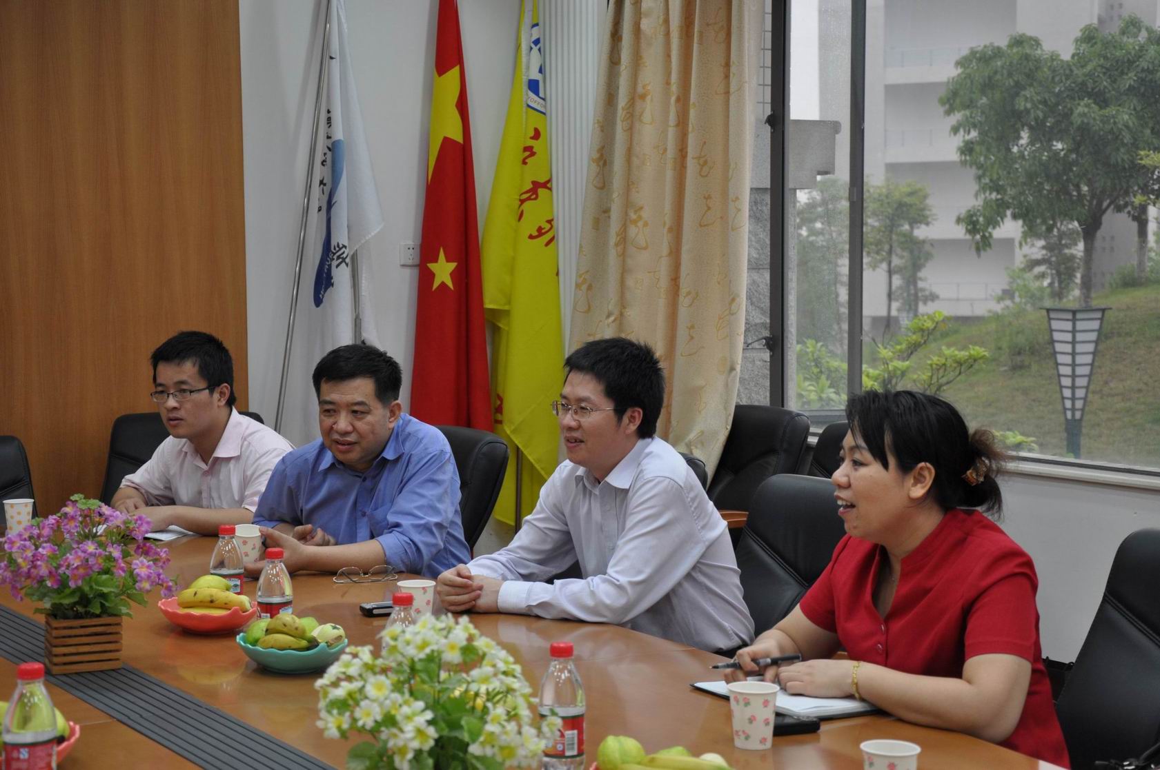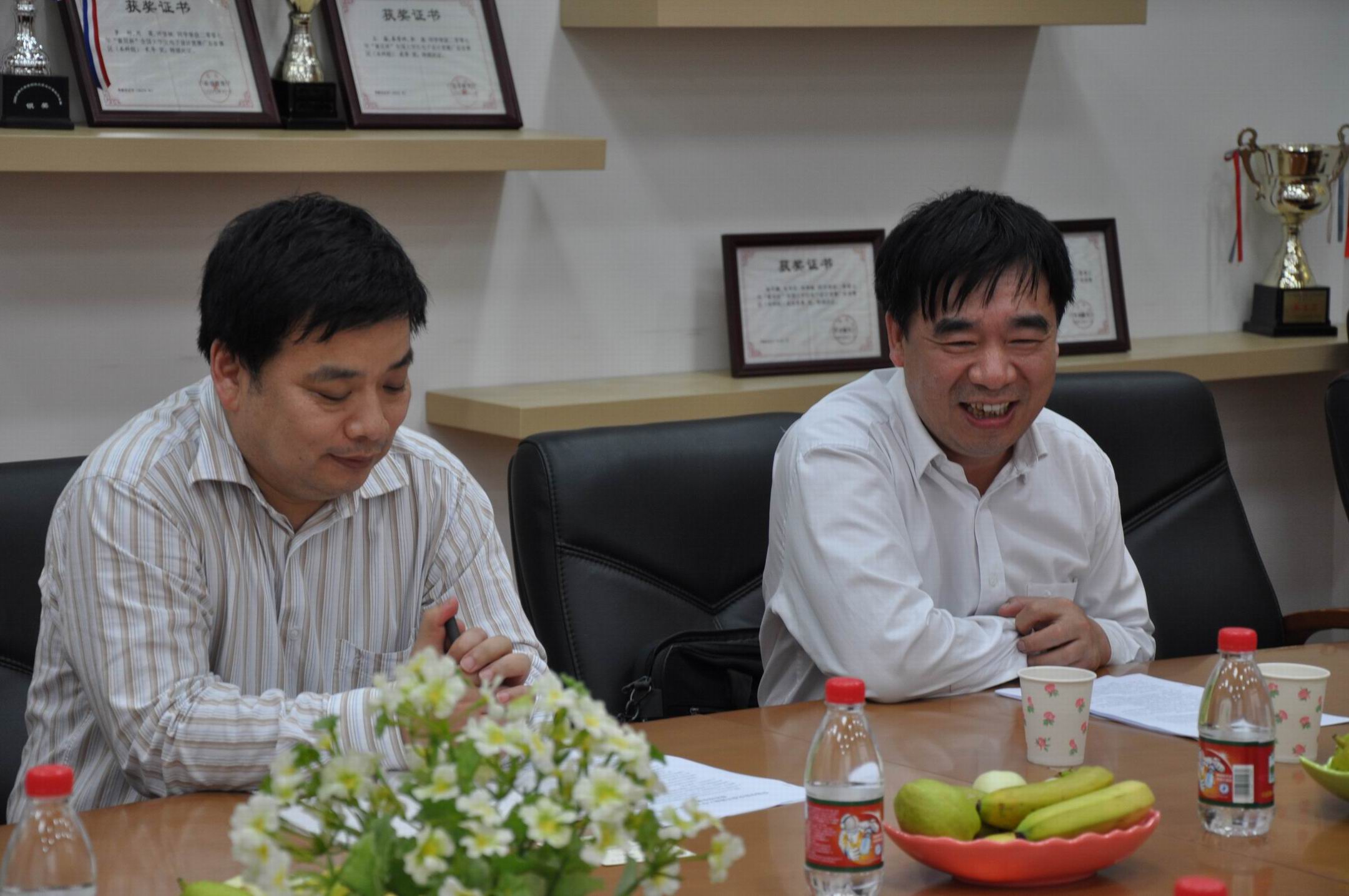 本网讯 4月16日下午,广东商学院信息学院代表团在信息学院党委书记林莉、院长张军的带领下,到我校信息学院,就深入学习实践科学发展观进行走访调研。院长姜灵敏、副院长李心广、蒋盛益和院党委副书记曾智鹏热情接待了来宾,并与他们进行亲切会谈。