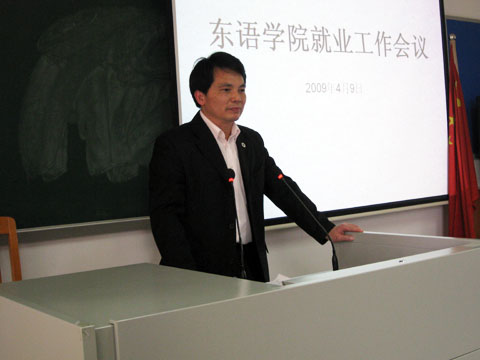4月9日下午,继4月3日召开的2009届毕业生就业座谈会后,东语学院在一教420会议室召开东语学院就业工作会议。东语学院院长韦立新,党委书记林绍雄,党委副书记郝建萍、学院办公室主任招轩以及各系主任,毕业班导师,辅导员和毕业班学生代表参加了本次会议。会议由韦立新主持。