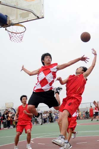 篮球场上惊现“空中芭蕾”(记者/苏俊杰)
