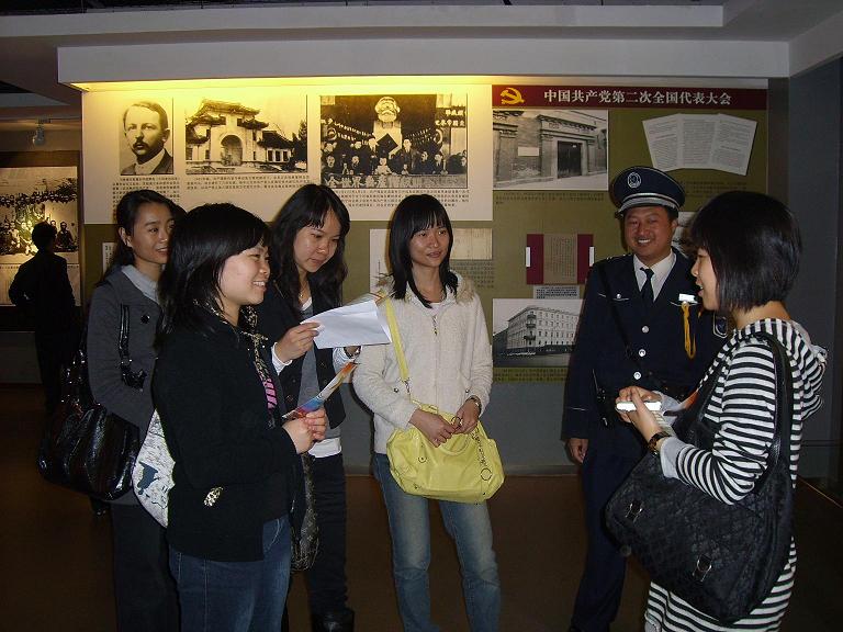 中午两点整,学生党员队伍就已抵达作为广州市爱国主义教育基地之一的中共三大旧址纪念馆,首先参观了中共三大历史陈列馆。馆内提供的丰富的党史资源和陈列的大量的文物,向学生党员们展现了我党领导人革命和建设的光辉。组织委员作为讲解员,向支部其他成员一一讲述中共“三大”在广州召开的历史背景、“三大”决议及影响等历史知识。