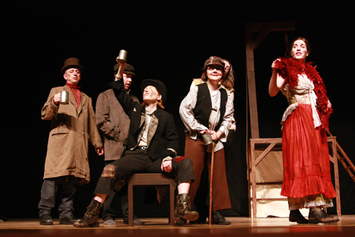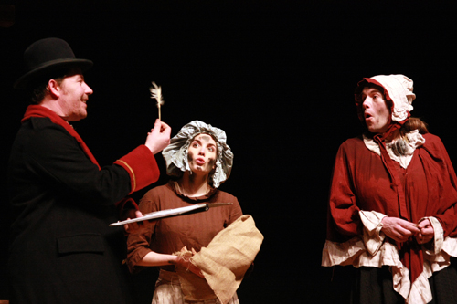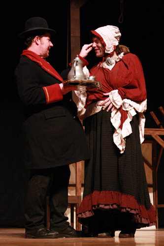 演员们用夸张的动作,演绎了一幕又一幕精彩而滑稽的剧情。例如在萨利病死的时候,萨利诅咒冷酷残忍的济困院院长比德尔时,一共说了4遍“I’ll see you in the——”(我要在……见到你),每说到最后一个词时便抽搐着倒下去,最后才艰难地说出“hell”(地狱)这个词。举手投足间,令现场观众捧腹大笑,同时也深刻地感受到了萨利的仇恨。