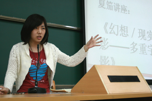 北大物理学院毕业的夏笳则以物理知识为引子做出题为《幻想现实电影——多重宇宙投影》的讲座,阐述了物理、幻想与电影三者间的关系。她指出,三者共同点在于反映现实方面,不同角度,不同时机会有很大的不同,这也是科幻使人类着迷的原因之一。