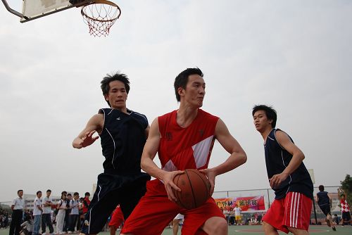 本网讯 3月19日下午, 2009“广外杯”篮球赛在南北体育场同时拉开帷幕。体育部主任林少娜、校团委副书记何越晖等嘉宾出席了南北校开幕式。