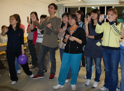 在那温情满屋,感动有余的庆生愿望后,开始了第一轮斗智游戏――看视频答问题。第一个视频是一段NBA球赛,大部分不懂篮球之道的社员不自觉地紧绷了神经,但当问题被揭晓时,大家不禁松了一口气,原来考的是眼力而非智力。