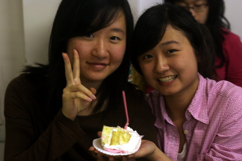 “感谢广外新闻社!第一次有这么多人陪我过生日,我想对和我一起吹熄生日蜡烛的人说:생일축하합니다!(韩语,生日快乐的意思)”