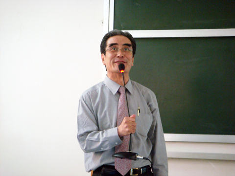 讲座开始之际,由藤田安彦发表讲话。他同时用手语与中文表示,“2008年,中日两国政府缔结相关协议,决定在两国互设文化中心”。这种特别的问候方式让同学们感到亲切自然,很快调动起全场的互动气氛。