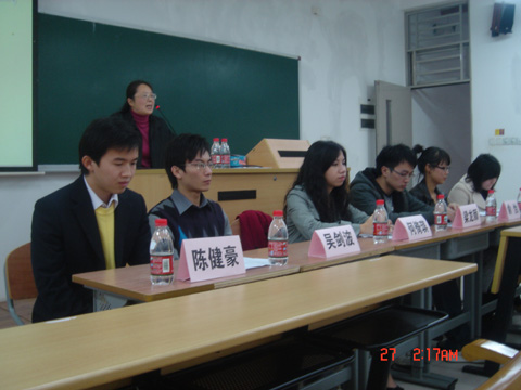 首先出场的是来自05级日语系的陈建豪,他以自己上班初期的经历为例谈到,在校学习的内容有限,要抓住任何锻炼语言的机会,即使进入公司,也应不断提高自己的语言水平,并告诉同学们一定要耐心地对待刚刚进入工作的迷茫期。只有在工作中不断尝试,不断暴露出自己的缺点才能真正实现自我提高。他真诚的态度博得了在场同学的掌声。