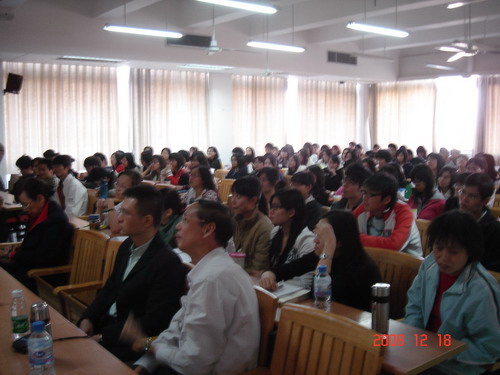 马国泉还告诉在座的政管学子:随着时代的、生活的步伐加快,同住地球村的有着不同文化背景,不同生活习惯及语言的人们交往愈加频繁,人们应当记住八字哲学——宽容、诚实、勤奋、节俭。