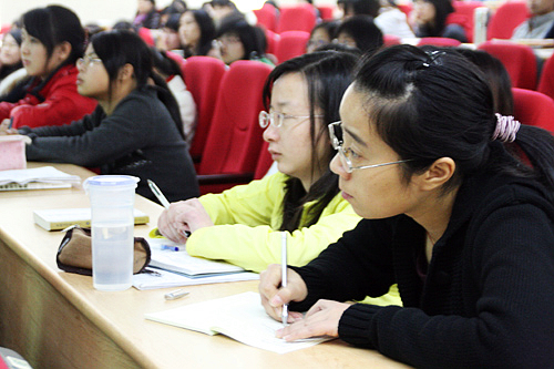 对于汉语教学,现场的同学都表现出浓厚的兴趣,纷纷提问。有同学问道:“在对外汉语教学中,系统的语言教学有没有必要?”赵金铭肯定了它的必要性,但他同时指出必须简化汉语拼音方案以便外国学生更好的学习。另外,同学们还提出了多个与如何开展好外语教学相关的问题,赵教授也对其一一作出详细解答。