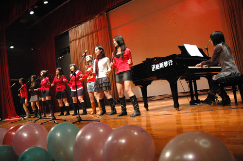 接下来是一首男生美声独唱的意大利歌曲《绿树成荫》,将听众带回那个大师辈出的年代。一身黑色燕尾服,他安静地站在台中央高唱,歌声时而低缓,时而高亢。女生小组唱演绎了现代流行音乐经典《Adiemus》。其中主唱呢喃般,声音中所带的沙哑和忧伤让全场寂然。