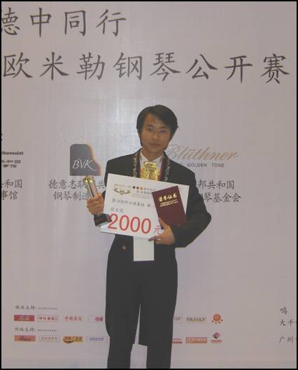 本网讯 12月13日-14日,德中同行-欧米勒钢琴公开赛全国总决赛于大学城华师音乐厅举行。我校法学院唐振华同学经过了全国选拔赛,在中外6000多名钢琴选手中脱颖而出,顺利进入全国总决赛。在总决赛中他凭着多年的即兴演奏功底以及令人震撼的舞台表现力一举摘取即兴演奏桂冠。这是唐振华继代表广外参加广东省第二届大学生艺术展演大赛获得一等奖之后,代表广外获得的又一国际大奖。