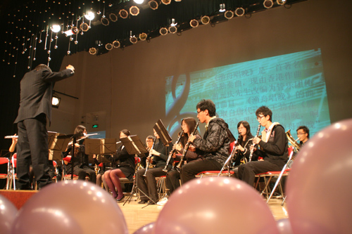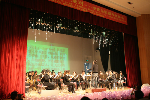 本网讯 12月17日晚上7:30,我校管乐团新年“烩”乐派对在艺术学院小剧场举行。管乐团驻团指挥兼艺术总监、管乐教育家汤广,和学生指挥欧昌健带领全团给全场的观众展现了本学期以来的成果,并与观众一起预贺新年的到来。