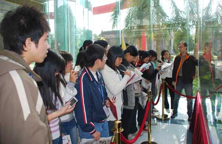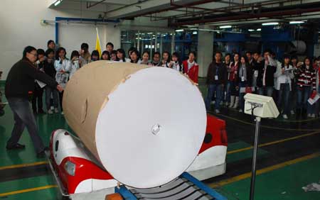 在工作人员的带领下,学生们进入车间参观,在三楼的玻璃走廊上,同学们亲眼目睹了亚洲一流的数码印刷设备。值得一提的是,南国商学院的学生记者是首批进入印务中心自动生产线的参观团体。学生们在车间看到:世界最先进的印刷机飞快的把报纸印好,送到工作人员手中,工作人员悠闲的在那用手捋捋报纸边缘,然后放上传送带,传送带于是开始忙呼,喀嚓喀嚓给一堆堆报纸扎上绳打上结,使之变成一捆捆。