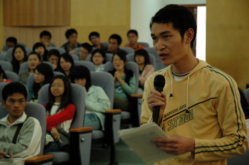 演讲伊始,Tung Bui向同学们抛出了奥巴马网络竞选策略这个热点问题。“作为一个有色人种,他考信息技术在高手林立的政场上大获全胜”Tung Bui解释说。