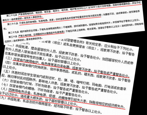 据悉,《广东外语外贸大学学生住宿管理规定》第二十七条明文规定:严禁使用电热杯、电饭煲、电茶壶、电烫斗、电热棒、电炉等500W以上(含500W)的大功率电器。违者收缴电器物品,并给予纪律处分;造成事故的,追究本人事故责任。