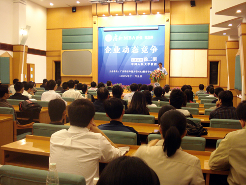 本网讯 11月9日上午,由中国人民大学研究生院副院长、商学院教授、博士生导师徐二明主讲的广外MBA讲堂第三讲“企业动态竞争”在北校区行政楼国际会议厅开讲。