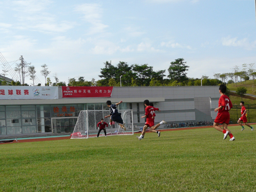 换人调整后,场上形势便发生巨大变化。第39分钟,广外明星队5号叶志刚右路带球突破,往左路一记斜长传,皮球却朝球门飞去,华师队门将曾剑锋出击时与己队后卫相撞没能控制住球,皮球不偏不倚地落到了广外前插的10号朱文洪脚上,他带球扣过一名防守队员,冷静地将球送入空门,1:0!广外明星队取得领先。