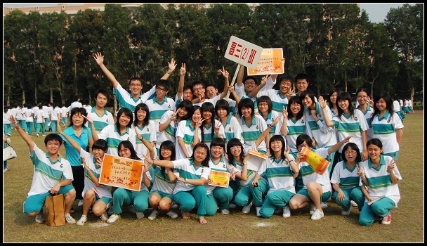 本届外校运动会最大的亮点是,每个参与的班级都展示了本班独特的班徽。各个班的班徽制作精美、构思巧妙。不少班级在班徽设计中融入了动漫元素,有的体现了奥运精神,有的表达了“龙的传人”的概念,还有的围绕本班班名进行设计,花样迭出。