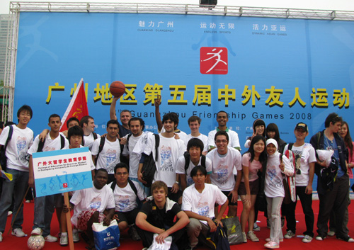 本网讯 11月1日,广州地区第五届中外友人运动会在广州天河体育中心开锣,来自留学生教育学院的34名留学生代表我校参加了除网球以外的五个项目的角逐。本届运动会涵括篮球、保龄球、网球、乒乓球、羽毛球、五人足球等六个项目的比赛,来自38个国家和地区的600多位外籍友人及100多名中方代表同场竞技,参赛国家和地区、人数和竞赛规模为历届之最。