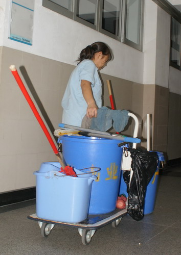 在她出去教室洗拖把的时候,阿姨问记者拍照是何故,记者只说,不会影响到阿姨工作的,阿姨没说什么,于是她就继续专注自己的“美化工程”。