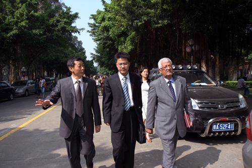 在许国彬的陪同下,努曼一行参观了我校文化广场、图书馆和云山咖啡屋等地。