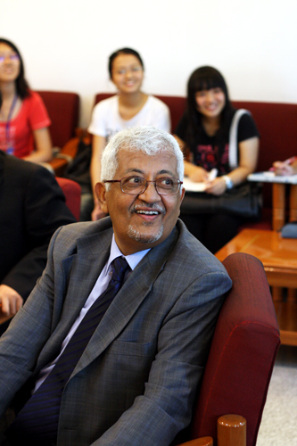 努曼感谢我校的盛情款待,并表示,在二十世纪七十年代时,也门学生学外语很多都选择了英语,其次就是选法语或德语,只有两名学生选择汉语,而这两位学生却是他们当中最聪明的学生,现在也门的亚丁大学教授汉语,他们觉得自己当初的选择是正确的。因为随着中国经济的发展,汉语日益受到重视。“现在在也门,汉语已经成为一种非常实用的语言,从某种程度上说,它比英语更有使用价值。”