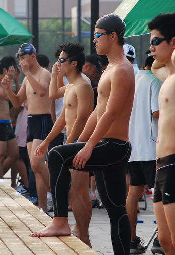 男子50米蛙泳比赛中,面对领先的信息学院许哲锐,法学院的黄超一直采用尾随战术。比赛进行到一半时,黄超突然发力拉近了与许哲锐间的距离,无奈后者优势过于明显,黄超只能屈居亚军。