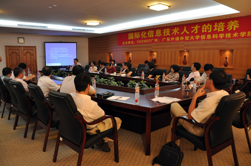 本网讯 10月25日下午,由YOCSEF广州和广东外语外贸大学携手主办的 “国际化信息技术人才的培养”论坛在广外南校区行政楼第三会议室举行。来自广东各高校信息学院的领导和IT领域的专业人士就这一主题进行了热烈的讨论,为珠三角地区国际化复合型人才的培养提出了建议。