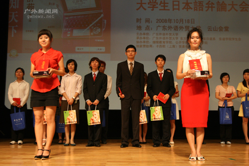 本网讯 10月18日下午,第四届“卡西欧杯”日语演讲比赛决赛在云山会堂拉开帷幕,来自东语学院、南国商学院、继续教育学院共25名选手展开激烈的角逐。本次比赛评委由卡西欧广州营业所主任中村理惠、东语学院副院长陈多友、日语系主任丁国旗及部分日语系教师等担任。经过五个多小时的角逐,日语系07级的李燕与05级的韩曙莲分别摘得零起点组和非零起点组的桂冠。